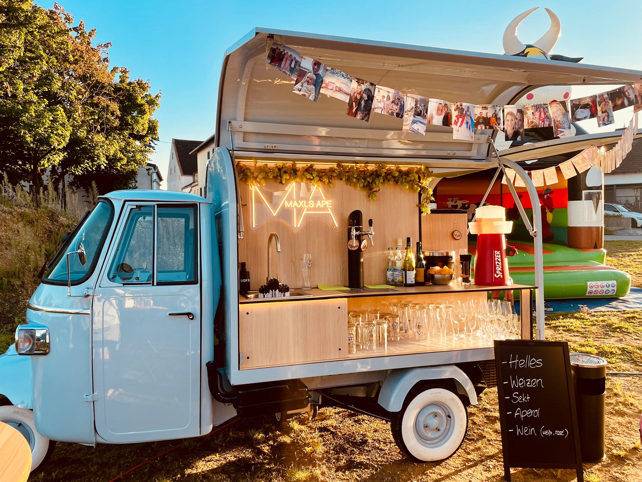 MaxlsApe steht für mobilen Getränkeausschank mit Eleganz und höchster Qualität. Unsere stilvolle Ape und unser erfahrenes Team verwandeln Ihre Veranstaltung in ein unvergessliches Erlebnis mit einer abwechslungsreichen und erstklassigen Getränkebar.